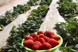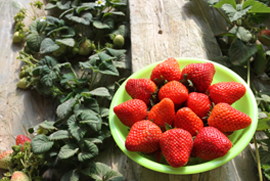 幸香(Sachinoka),日本品種,由豐香與愛莓雜交育成。果實硬度、糖度、肉質、風味及抗白粉病能力均優于豐香,果實圓錐形,果形整齊,中大均勻,鮮紅色,味香甜,硬度大。一級序果平均單果重20.0克,最大單果重30.0克。果肉淺紅色,肉質細,甜,有香氣,香甜適口,汁液多,可溶性固形物含量10.0%。